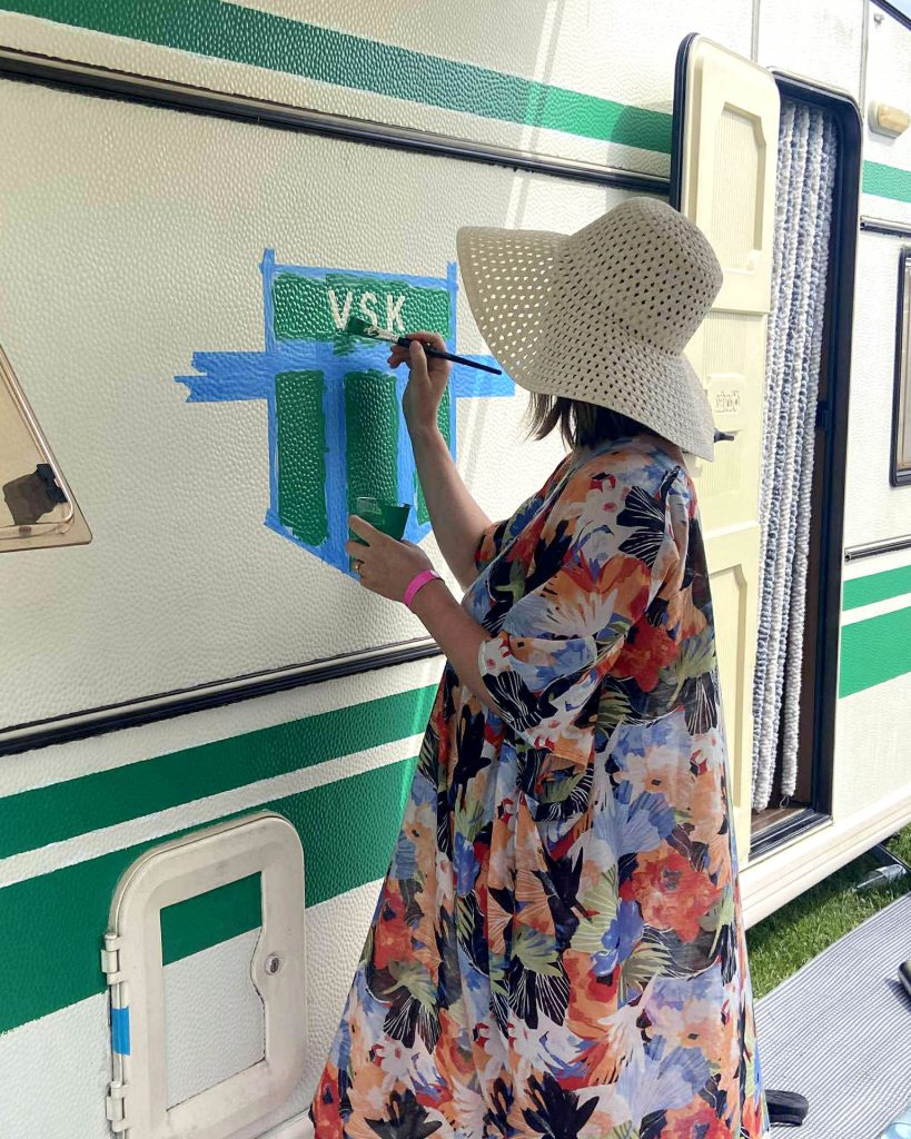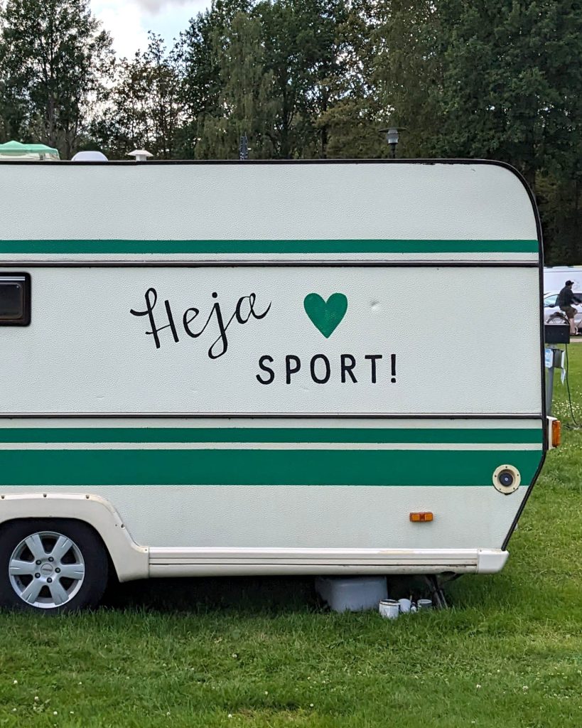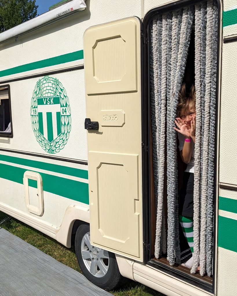 Min syster Sara fick idén redan förra hösten, när hon satt på en camping under en matchdag. Att bara hänga ut en VSK-sjal kändes rätt fjuttigt – särskilt när vi sett andra supportrar pryda sina vagnar med stora flaggor. Så hon vände sig till mamma och frågade om hon inte fick måla hela husvagnen grönvit. Och mamma, som aldrig säger nej till ett kul projekt, svarade såklart ja.